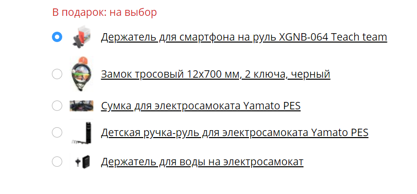 При покупке любого вида электротранспорта в Астрахани мы дарим в подарок нужные аксессуары. Перечень подарков вы можете увидеть в карточке товара.
