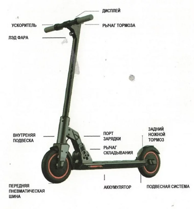 Он оснащён большими 10-дюймовыми колёсами, яркой фарой и дисплеем. Переключение режимов и включение подсветки осуществляется двойным нажатием на кнопку включения.