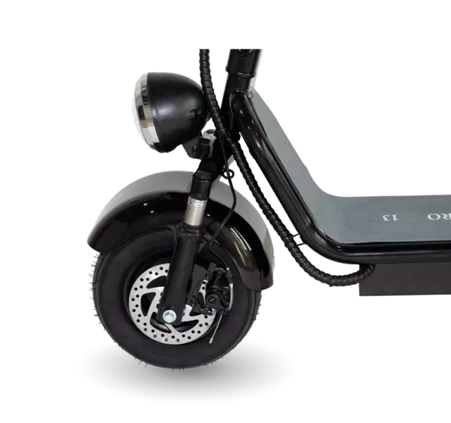 Спереди на рулевой стойке расположена фара, освещающая путь. Угол её свечения можно регулировать. Сзади находятся габаритные огни, оповещающие водителей сзади о нахождении самоката на дороге.