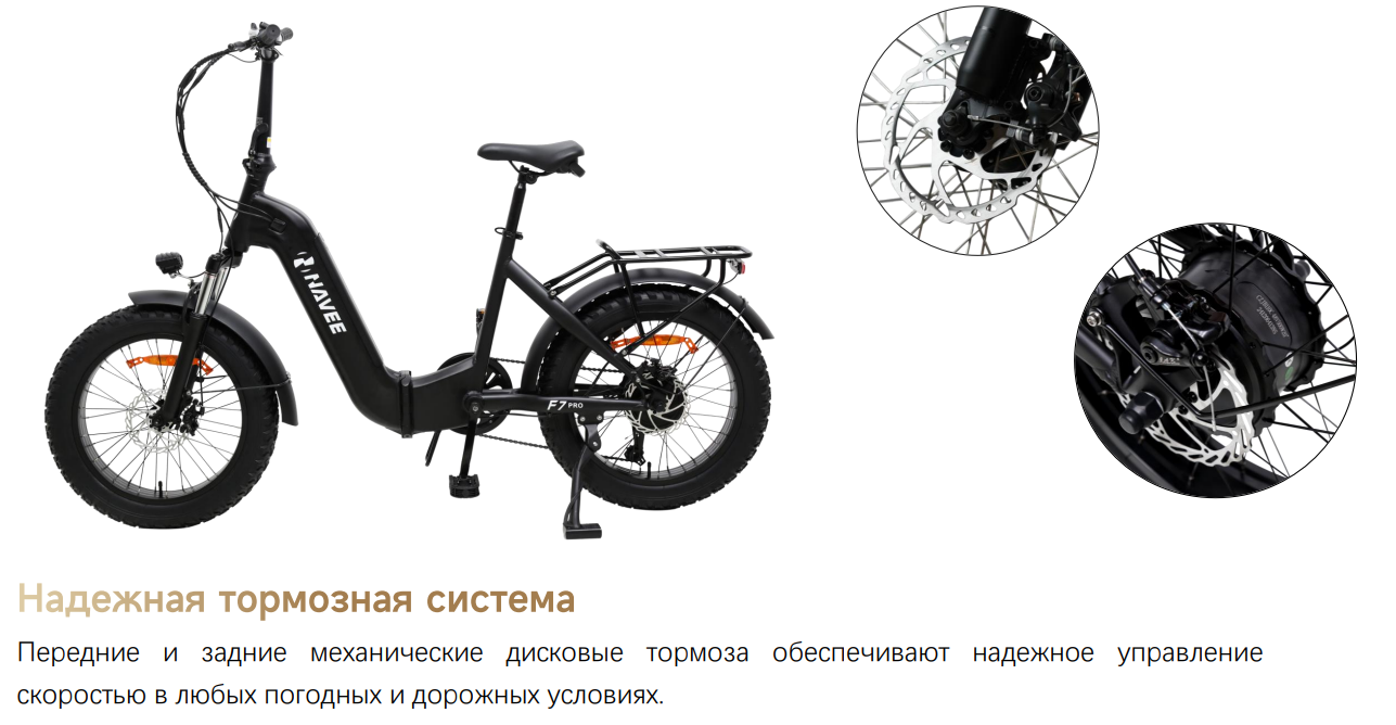 - Передние и задние механические дисковые тормоза обеспечивают надежное управление скоростью в любых погодных и дорожных условиях